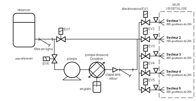 Dans une approche de développement durable et de réduction des coûts d’exploitation, la maîtrise d’œuvre a proposé de récupérer l'eau de pluie dans un réservoir afin d’irriguer le mur végétalisé. On se propose à présent de valider cette solution.