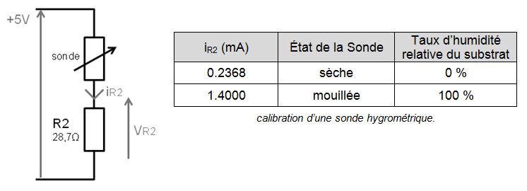 Le schéma de principe du conditionneur lié à la sonde ainsi que les données de calibration du capteur sont donnés ci-dessous :