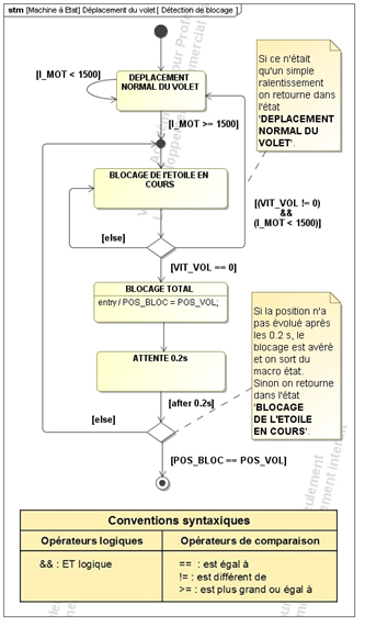 Diagrammes d’états - Déplacement du volet + détection de blocage