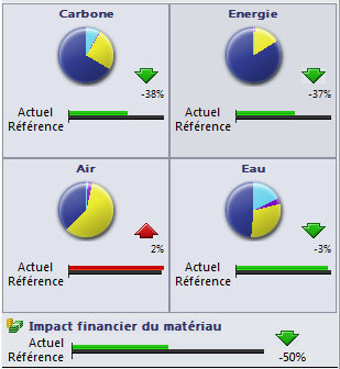 Vous pouvez maintenant voir l'impact sur l'environnement de l'assemblage. Le calcul est basé sur les matériaux appliqués à tous les composants et les paramètres associés à ces matériaux. Les calculs sont basés sur les valeurs par défaut, que vous pouvez affiner.